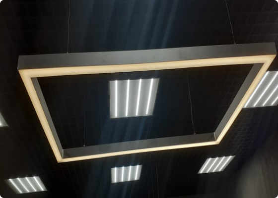 Проект реализован с применением подвесных профильных светильников серии СП-ЛАЙН по индивидуальным параметрам заказчика